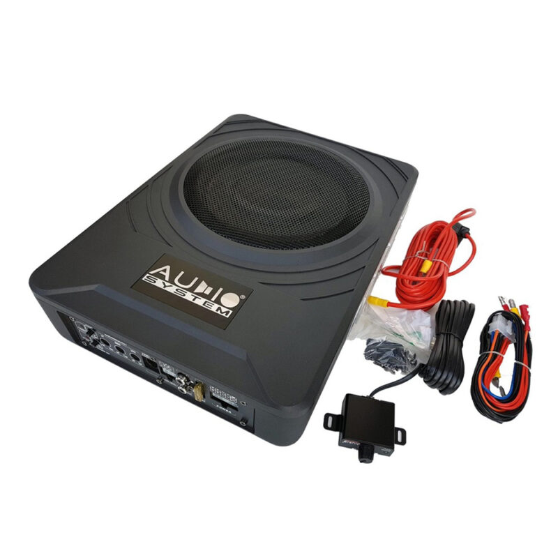 UNDERSEAT WOOFER with Internal Mono Amplifier extrem heavy aluminum-diecast housing with 6,5 kg 2x passiv-cone on both sides phase shift: