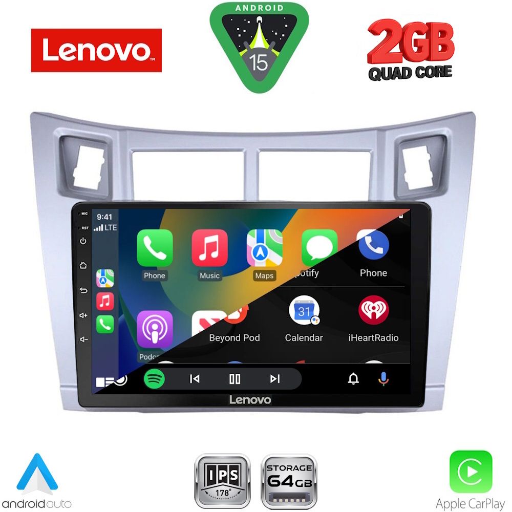 Lenovo Thinkplus Series 4Core Android15 2+32GB Toyota Yaris (Vitz) 2015-2020 RHD Navigation Multimedia Tablet 9″ Με Carplay & Android Auto