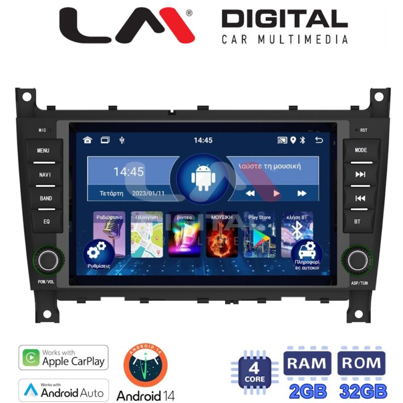 LM Digital – LM N4093 GPS Οθόνη OEM Multimedia Αυτοκινήτου για MERCEDES C (W203) 04>07, CLC 04>08 (CarPlay/AndroidAuto/BT/GPS/WIFI)