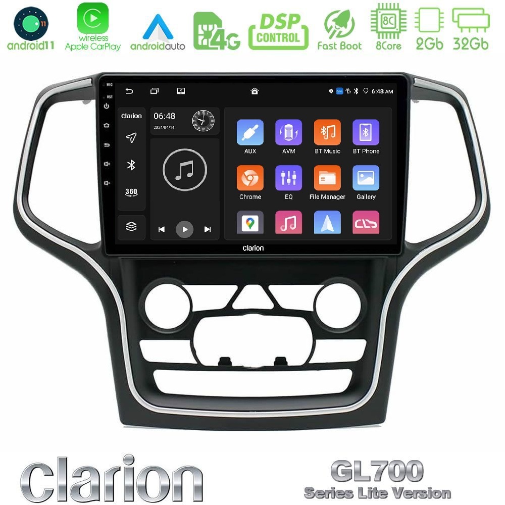 Clarion GL700 Lite Series 8Core Android11 2+32GB Jeep Grand Cherokee 2014-2020 Navigation Multimedia Tablet 10″ Με Carplay & Android Auto