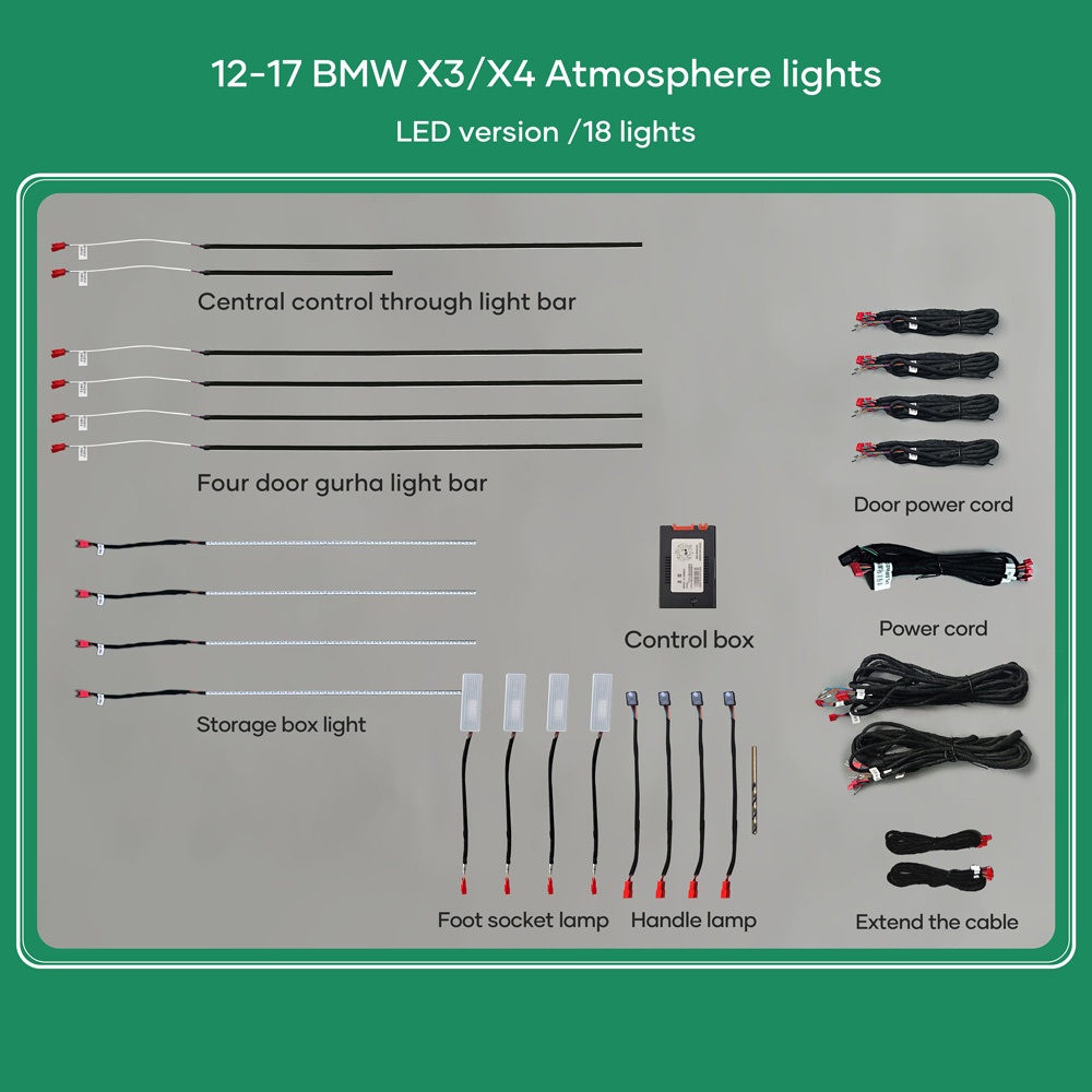 DIQ AMBIENT BMW X3 (F25) (Digital iQ Ambient Light for BMW X3 (F25) / X4 (F26) mod. 2011-2018 with 17 Lights, 11 Colours)