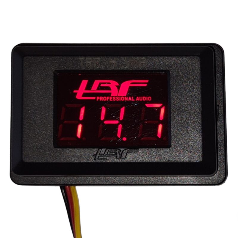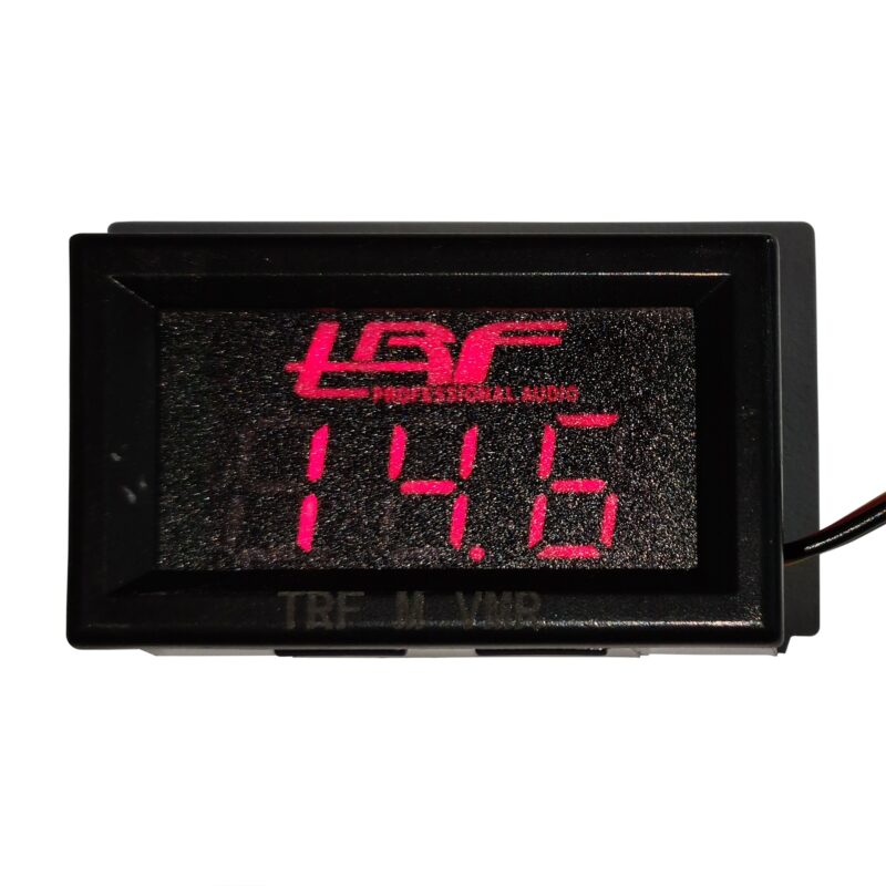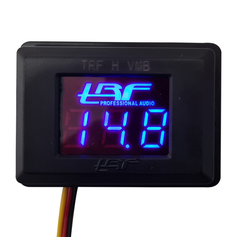 Model:TRF H VMBVoltmeter specification :*LED Voltage Gauge*Accurately and clearly displays car audio voltage levels*Brilliant LED screen: blue*With logo led TRF*Display LO below 9.5V *9.7-12 Blink *12-16V always bright *Above 16V flicker CONNECTION:*RED : +12V BATT*BLACK: -12V GND*BLUE : ACC