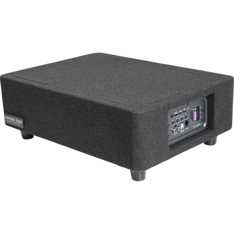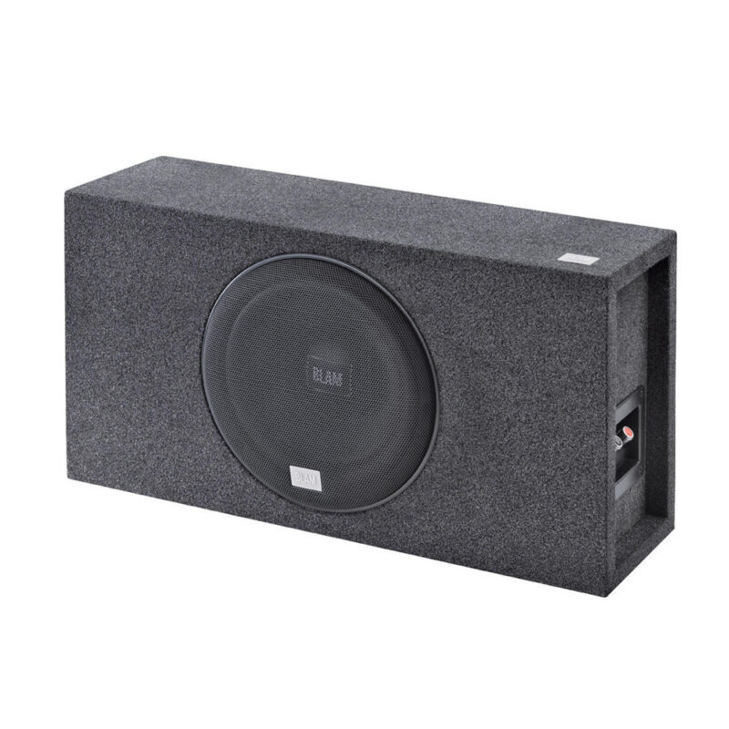 430 Watts max Car specific 25 cm / 10″ subwoofer loaded active enclosure for vehicles with limited space