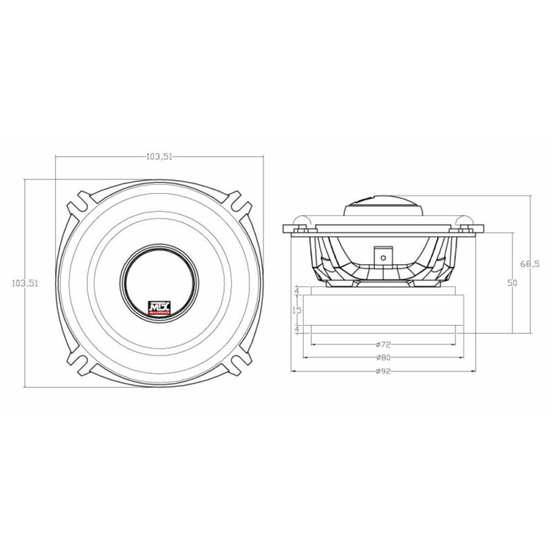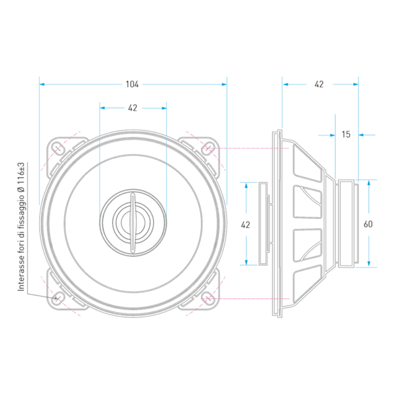 TX6 Coaxial speakers Ø10cm 4" 2-way 70W RMS 4Ω with aluminum frame, Ø25mm TSV TIL voice coil and Ø22mm silk dome neodymium tweeter