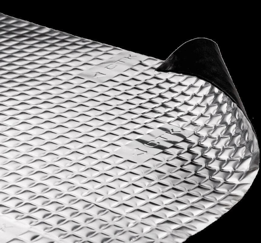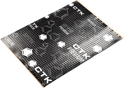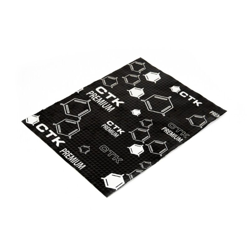 Το CTK Premium είναι ένα από τα πιο προηγμένα αυτοκόλλητα αντικραδασμικά υλικά της αγοράς, με βάση το πιο σύγχρονο υψηλής ποιότητας σύνθετο βουτυλικό καουτσούκ, ειδικά πολυμερή και ενισχυμένο με ανάγλυφο φύλλο αλουμινίου πάχους 100 microns (0,1 mm), το οποίο βελτιώνει περαιτέρω την ακουστική ιδιότητες.