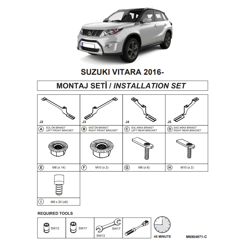 Βάσεις Πλαινών Σκαλοπατιών (Dma) Για Suzuki Vitara 2015- Suv LyΟι βάσεις στήριξης για τα πλάγια σκαλοπάτια μας έχουν σχεδιαστεί ειδικά για κάθε μοντέλο οχήματος, ώστε να εξασφαλίζεται τέλεια εφαρμογή και εύκολη εγκατάσταση. Δεν απαιτείται τρύπημα ή κοπή, καθώς χρησιμοποιούν τα υπάρχοντα σημεία στήριξης στο πλαίσιο. Κατασκευασμένες από υψηλής ποιότητας, γαλβανισμένο μέταλλο ψυχρής έλασης για μέγιστη ανθεκτικότητα και αντοχή. Κάθε σετ βάσεων δοκιμάζεται για συμβατότητα και υποστηρίζει ικανότητα φορτίου έως και 150 kg.Suzuki | Vitara | Vitara 15+