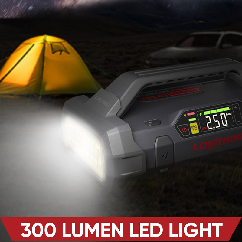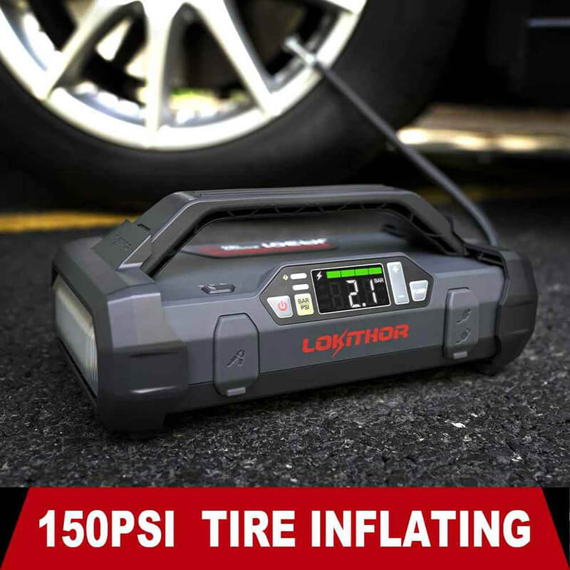 Εκκινητής Μπαταριών Αυτοκινήτου Powerbank Κομπρεσσέρ Αέρος 150PSI Φακός Led 4 Σε1 Lokithor JA301 12 Volt 2000A