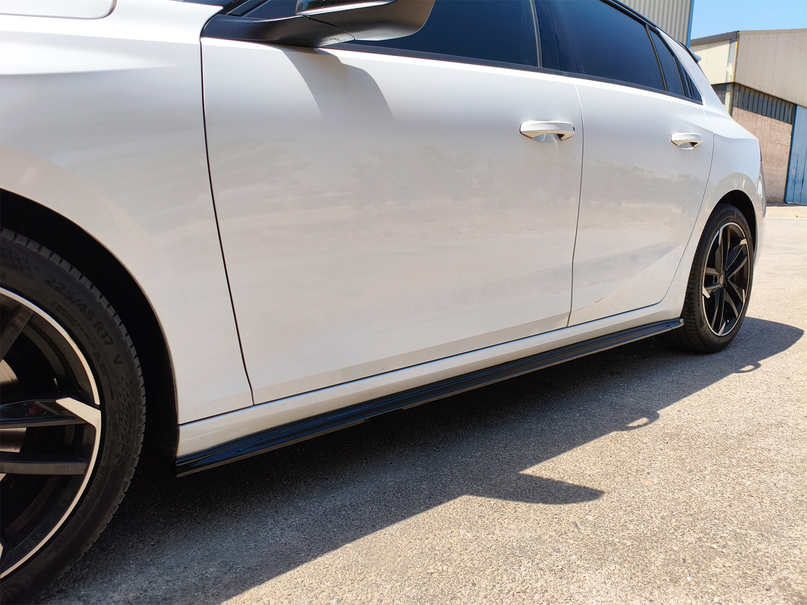 Τα Επιπρόσθετα Μαρσπιέ για το Opel Astra L Hatchback κατασκευάζονται από ABS Πλαστικό υψηλής ποιότητας και αισθητικής σε μηχανές θερμοδιαμόρφωσης τελευταίας τεχνολογίας, έχοντας άψογη εφαρμογή και εύκολη τοποθέτηση. Το υλικό πλαστικού που χρησιμοποιείται για την δημιουργία προϊόντων έρχεται σε Μαύρο Γυαλιστερό χρώμα και με αντιχαρακτική επιφάνεια. Συνοδεύεται από προστατευτική μεμβράνη όπου αφαιρείται πριν την τοποθέτηση.