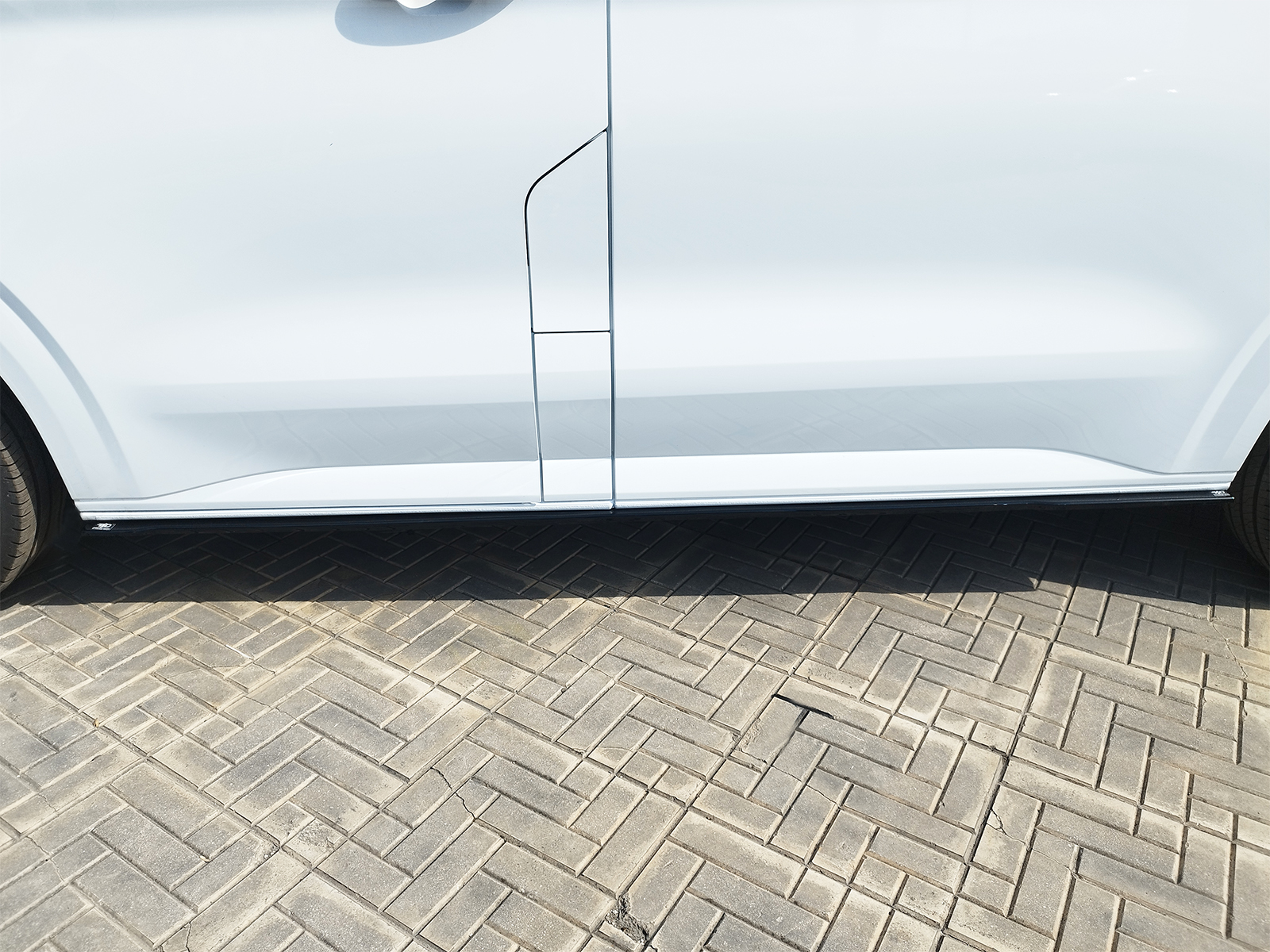 Τα Επιπρόσθετα Μαρσπιέ V.1 για το Ford Transit Custom Mk2 / Volkswagen T7 κατασκευάζονται από ABS Πλαστικό υψηλής ποιότητας και αισθητικής σε μηχανές θερμοδιαμόρφωσης τελευταίας τεχνολογίας, έχοντας άψογη εφαρμογή και εύκολη τοποθέτηση. Το υλικό πλαστικού που χρησιμοποιείται για την δημιουργία προϊόντων έρχεται σε Μαύρο Γυαλιστερό χρώμα και με αντιχαρακτική επιφάνεια. Συνοδεύεται από προστατευτική μεμβράνη όπου αφαιρείται πριν την τοποθέτηση.
