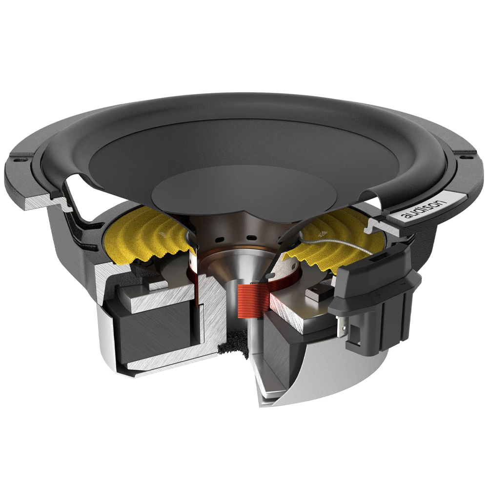 Με τον ισχυρό μαγνήτη και ένα πηνίο φωνής CCAW (καλώδιο αλουμινίου με επένδυση χαλκού) 40 mm, το AV 6.5 P II εγγυάται γραμμική απόκριση σε ολόκληρο το φάσμα χαμηλής και μεσαίας συχνότητας. Η ευελιξία του επιτρέπει να λειτουργεί απρόσκοπτα με το DSP, βελτιστοποιώντας την απόδοση του ήχου σε οποιαδήποτε κατάσταση, εξασφαλίζοντας πάντα φυσική και δυναμική αναπαραγωγή.