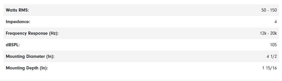 Voice coil dimension : 4.0inch