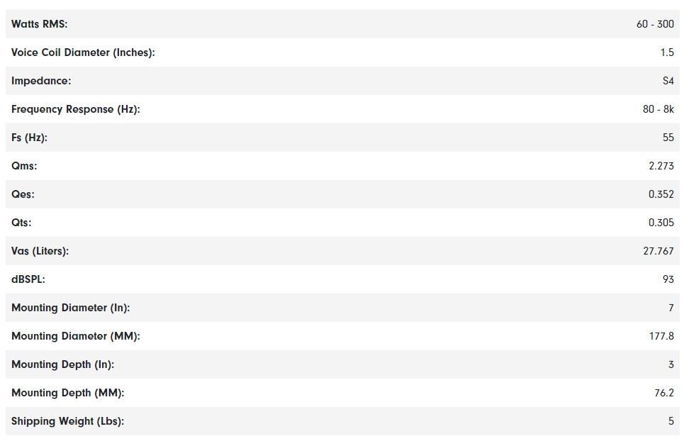 | Watts RMS: | 60 – 100 |