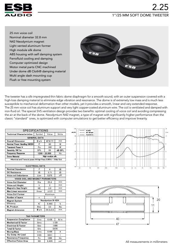 – Το πηνίο φωνής 25 mm χρησιμοποιεί υποστήριξη αλουμινίου και τεχνολογία διπλής στρώσης περιέλιξης από σύρμα χαλκού με πυρήνα αλουμινίου.