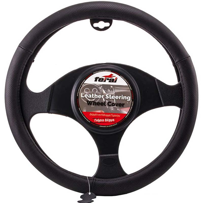 Κάλυμμα Τιμονιού Αυτοκινήτου Δερμάτινο Με Τρυπητό Μαύρο Large 40cm