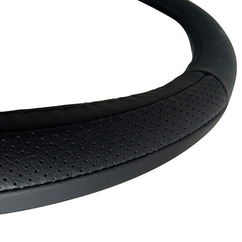 Κάλυμμα Τιμονιού Αυτοκινήτου Δερμάτινο Μαύρο-Μαύρο Medium 38cm