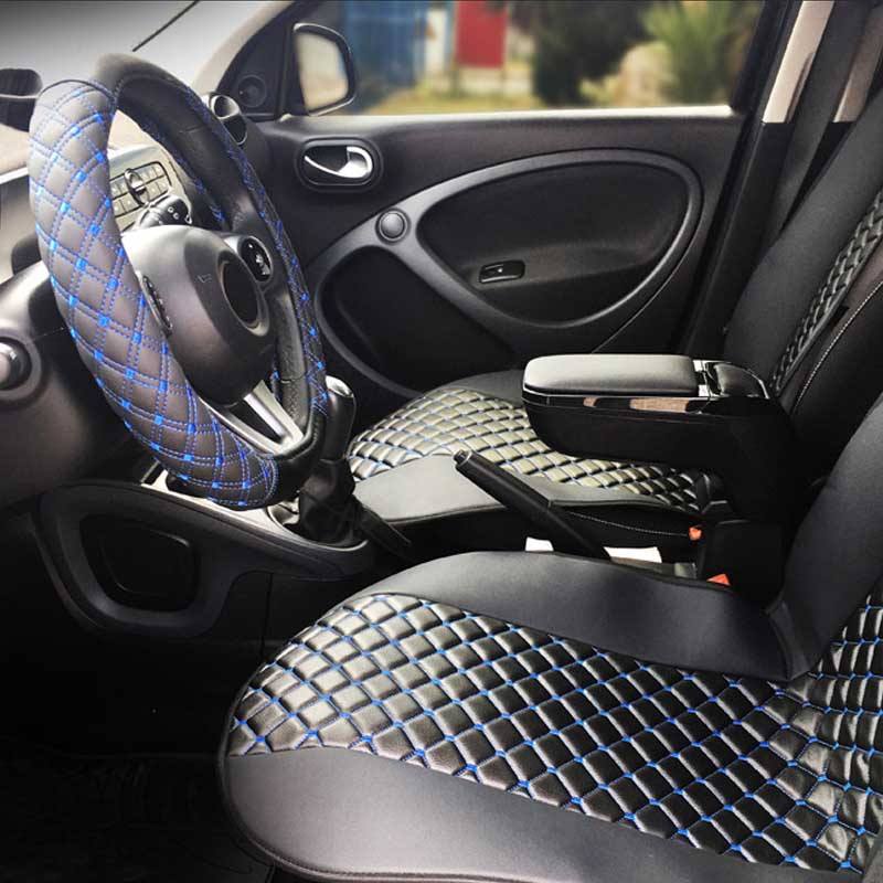 Κάλυμμα Τιμονιού Αυτοκινήτου PU Δίχρωμο ΜαύροΜπλε Medium 38cm