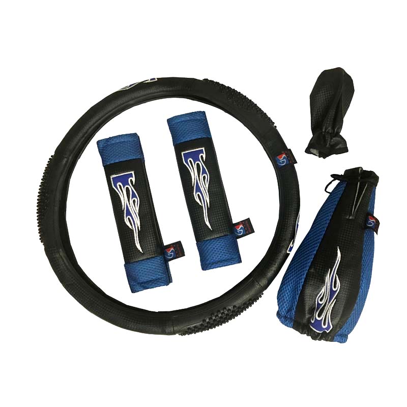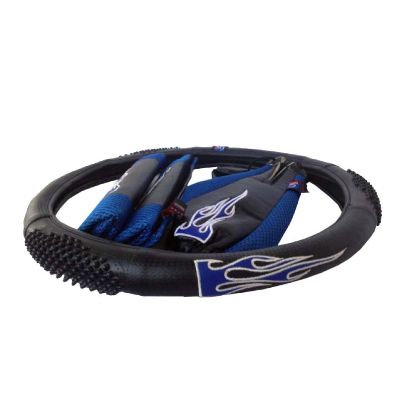Κάλυμμα Τιμονιού Αυτοκινήτου Δερματίνη Flame Μπλε Medium 38cm