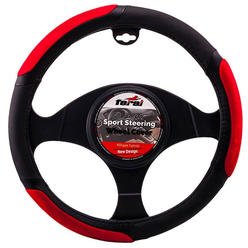 Κάλυμμα Τιμονιού Αυτοκινήτου PU Δίχρωμο ΜαύροΚόκκινο Medium 38cm