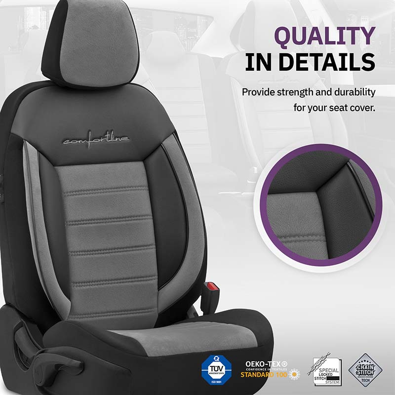 Καλύμματα Αυτοκινήτου Otom Comfortline Design Universal Sued Rachel Δερματίνη Σετ Εμπρός Πίσω 11 Τεμαχίων Μαύρο – Γκρι CMF-206