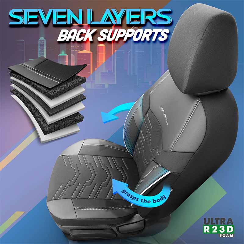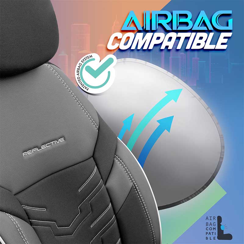 Καλύμματα Αυτοκινήτου Otom Reflective Design Universal Jacquard / Rachel / Δερματίνη Σετ Εμπρός / Πίσω 11 Τεμαχίων Μαύρο Με Άσπρη Ραφή RFL-2602Καλύμματα καθισμάτων για το αυτοκίνητο Otom Reflective Design Universal, από υψηλής ποιότητας Δερματίνη σε συνδυασμό με Jacquard / Rachel ύφασμα . Προστατεύουν από λεκέδες, καθημερινή φθορά και διατηρούν τα καθίσματα του αυτοκινήτου στην αρχική τους όψη. Καθαρίζονται και τοποθετούνται εύκολα! Breathable Fabric : Kατασκευασμένα από 3 στρώσεων μη καρκινογόνα υλικά, διαπνέον ύφασμα και σφουγγάρι 5mm στο μεσαίο τμήμα και 4mm στα άκρα , συνδυάζουν την άνεση, υψηλή ποιότητα και την αντοχή στην χρήση.Extra Supportive 7 Layers : Ορθοπεδικός σχεδιασμός 7 στρώσεων στα πλαϊνά ώστε να παρέχεται στήριξη στην πλάτη και τη μέση . Προλαμβάνει τον πόνο και αυξάνει την οδηγική άνεση.Aerofit Tech : Σχεδιασμένα με την τεχνολογίαAerofit για να καλύπτουν το κάθισμα με τέλεια εφαρμογή 360°.Airbag Compatible : Κατάλληλα για καθίσματα εξοπλισμένα με πλευρικούς αερόσακους, για πιο ασφαλής οδήγηση.Zip-up Tech : Διαθέτει 3 Φερμουάρ ώστε να προσαρμόζεται στα πίσω καθίσματα είτε είναι διαιρούμενα 60-40 είτε 40-60 είτε 50-50. Προσαρμόζεται επίσης πλήρως στις ζώνες ασφαλείας και στο υποβραχιόνιο στα πίσω καθίσματα . Multi Functional Pockets : Οι πλάτες των μπροστινών καλυμμάτων είναι εφοδιασμένες με θήκες για αποθήκευση των προσωπικών σας αντικειμένων κατά την διαδρομή. Σχεδιαμένα για universal εφαρμογή. Κατάλληλα για τους περισσότερους τύπους αυτοκινήτων .