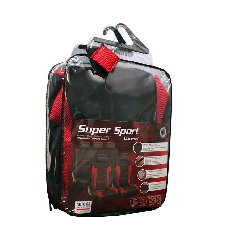Καλύμματα Υφασμάτινα Super Sport All In One ΜαύροΚόκκινο Σετ Εμπρός-Πίσω 11 Τεμάχια