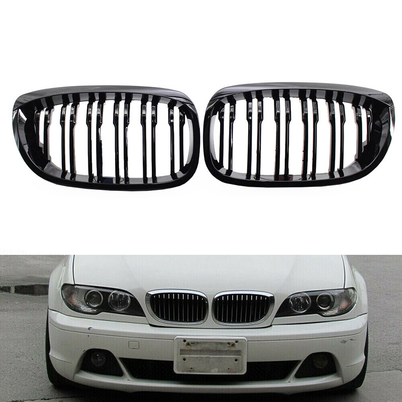 Καρδιές Μάσκας Για Bmw 3 E46 03-06 CoupeCabrio M4 Look Με Διπλή Γρίλια 4D Μαύρο Γυαλιστερό 2 Τεμάχια