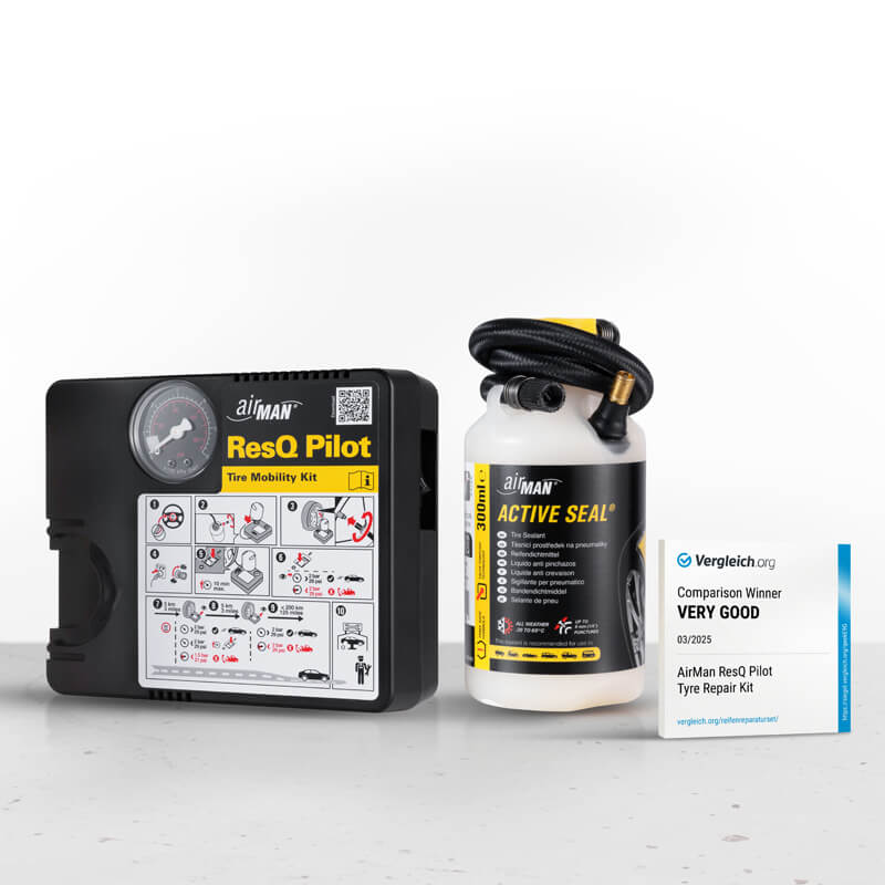 Κομπρεσέρ – Κομφλέρ Αέρος Αυτοκινήτου AirMan ResQ Pilot 12V Με Μανόμετρο Και Σφραγιστικό Ελαστικών 300ml 71-047Επαναστατικό Set Κομπρεσέρ & Κολλητικό Airman για τα ελαστικά σας !!Σφραγίστε την τρύπα του ελαστικού σας και συνεχίστε το ταξίδι σας γρήγορα και με ασφάλεια χωρίς να χρειαστεί να αλλάξετε ρεζέρβα !!