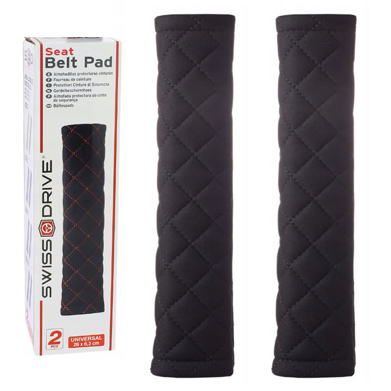 Μαξιλαράκια Ζώνης Ασφαλείας Swiss 26×6.3cm Μαύρα Με Μαύρη Ραφή Ζευγάρι 2 Τεμάχια