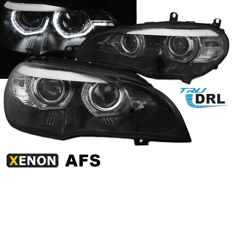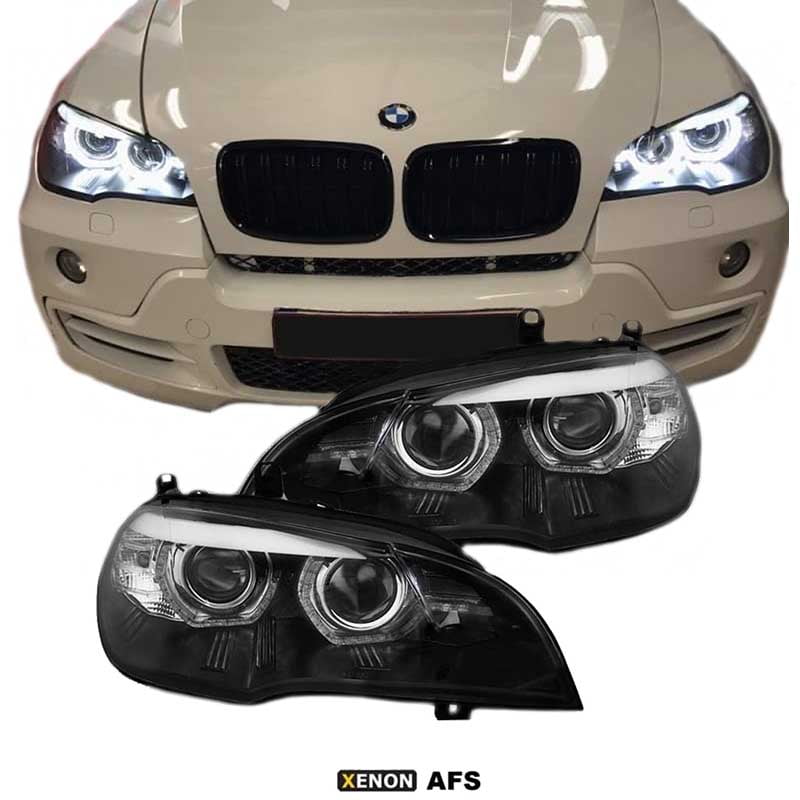 Μπροστινά Φανάρια Set Για Bmw X5 E70 07-10 3D LED Angel Eyes Μαύρα Xenon AFS D1S Με Μοτέρ Sonar