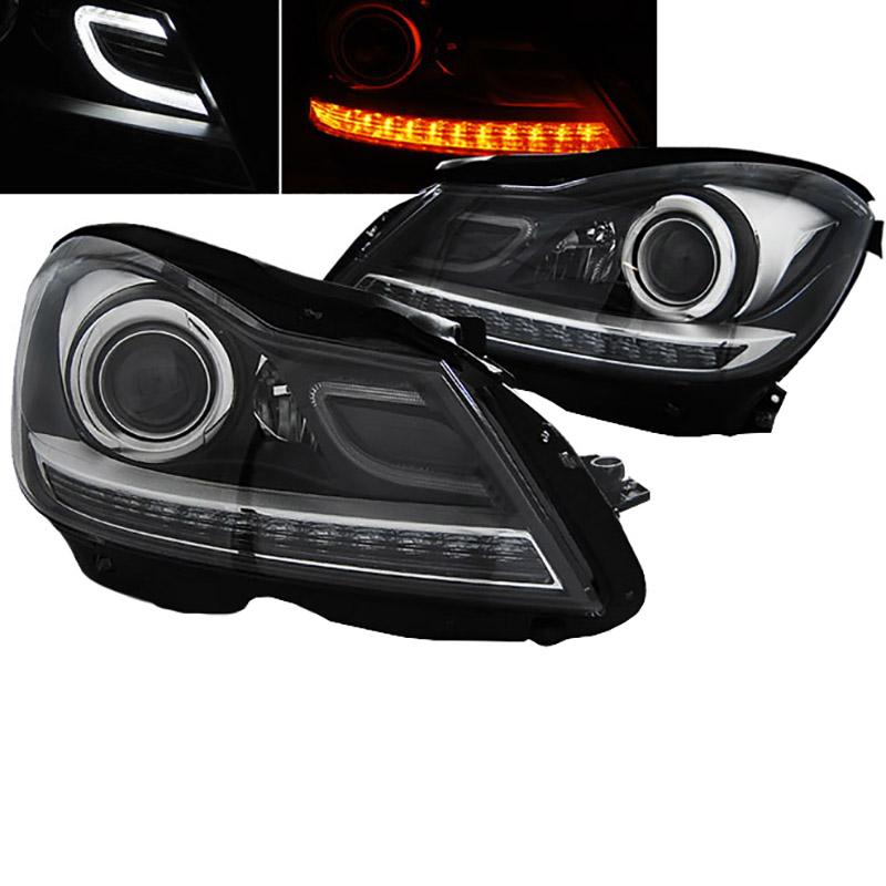 Μπροστινά Φανάρια Set Για Mercedes-Benz C-Class W204 11-14 DRL & Led Φλας Μαύρα H7 Με Μοτέρ Depo