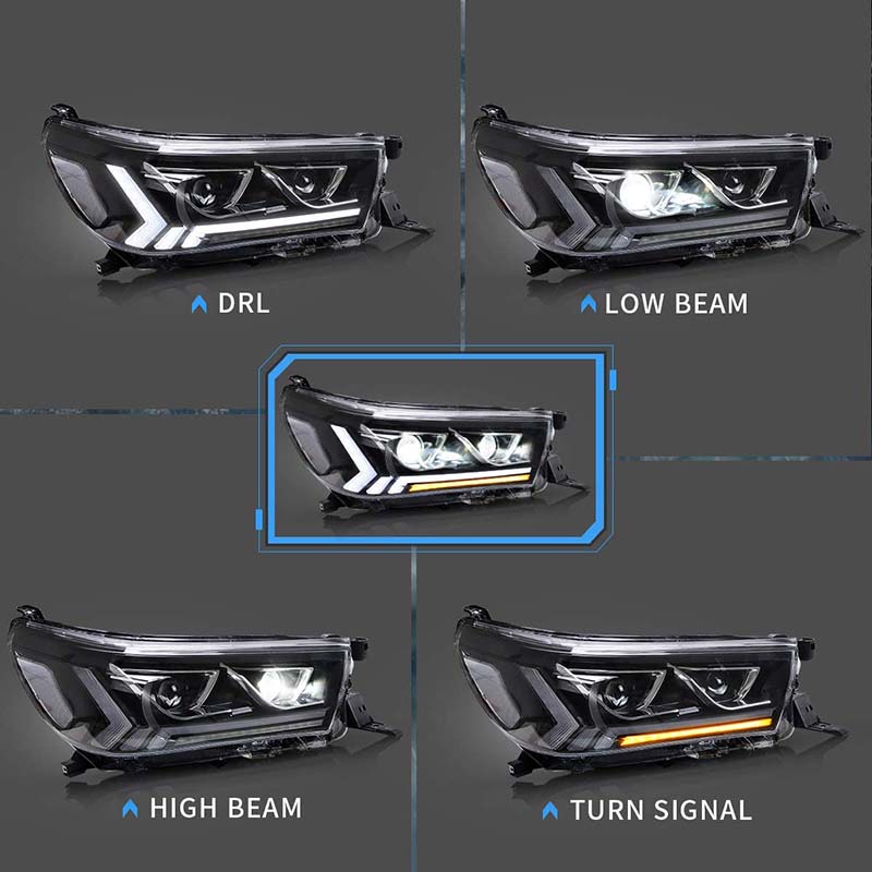 Μπροστινά Φανάρια Set Για Toyota Hilux Revo 15-19 Με Dynamic Start DRL & Φλας Μαύρα Με Μοτέρ VLand