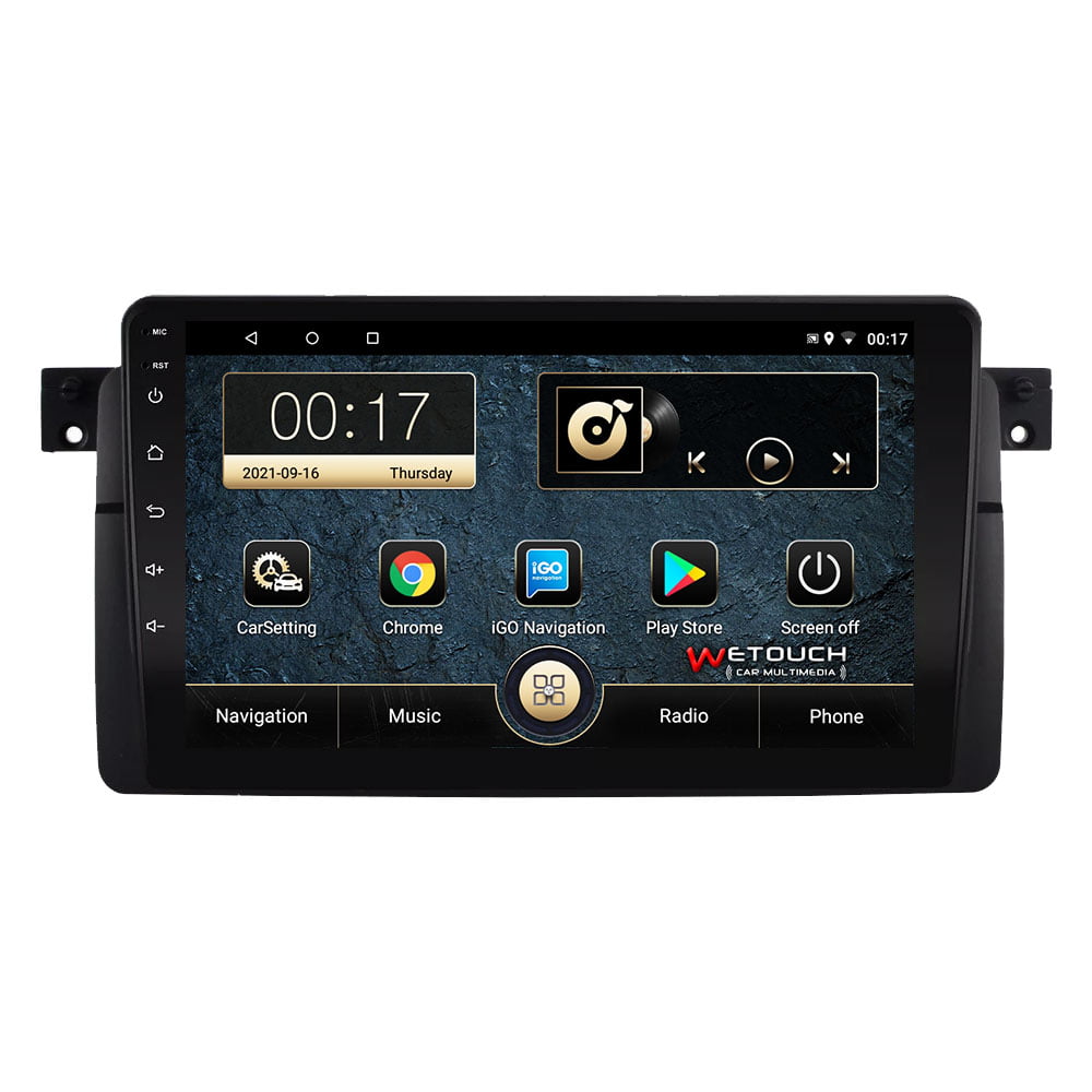 Οθόνη Bmw E46 multimedia με ενσωματωμένο σύστημα πλοήγησης (χωρίς ίντερνετ) με ελληνική γλώσσα, φωνή & χάρτες. Η οθόνη Bmw E46 της Wetouch έχει πλήρη συμβατότητα με τα χειριστήρια τιμονιού και τις εργοστασιακές λειτουργίες των μοντέλων που ταιριάζει, ενώ διαθέτει λογισμικό Android, λειτουργία αφής και κουμπιά για γρήγορη μετάβαση σε navigation, bluetooth κ.α. Με τη χρήση bluetooth ο χρήστης δέχεται και πραγματοποιεί κλήσεις με πολύ καλή ποιότητα ήχου και μικροφώνου.