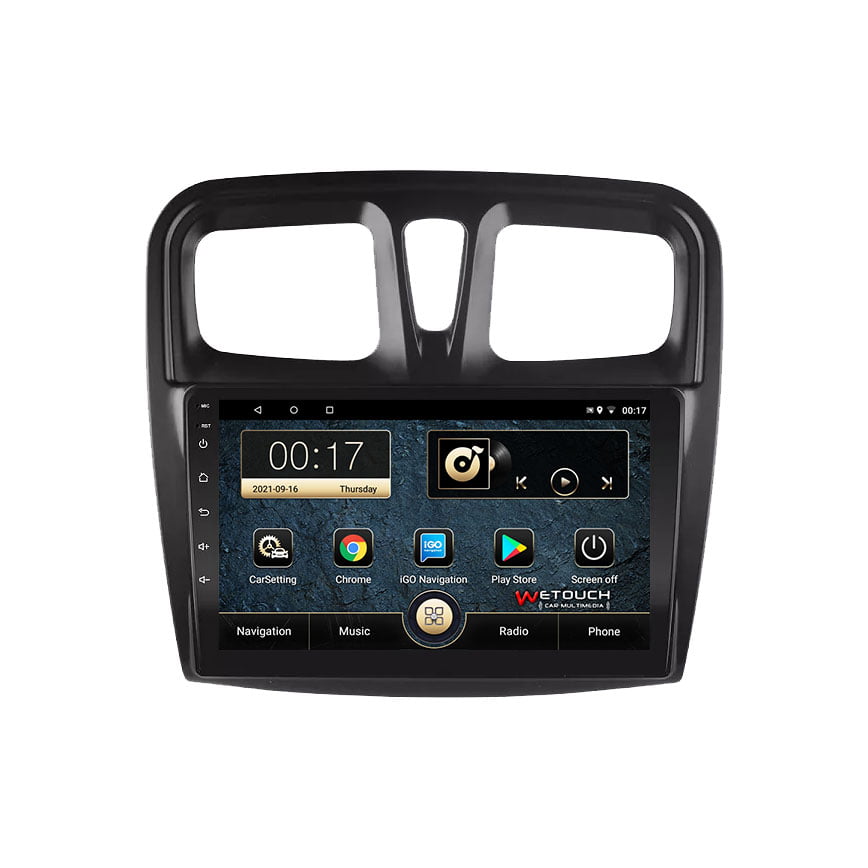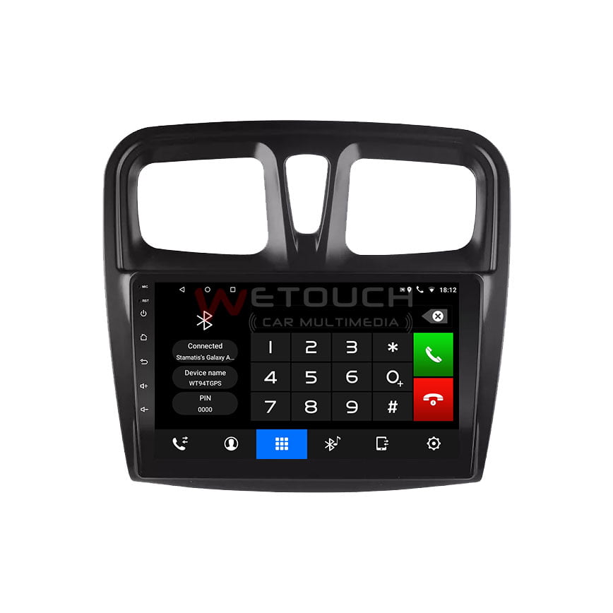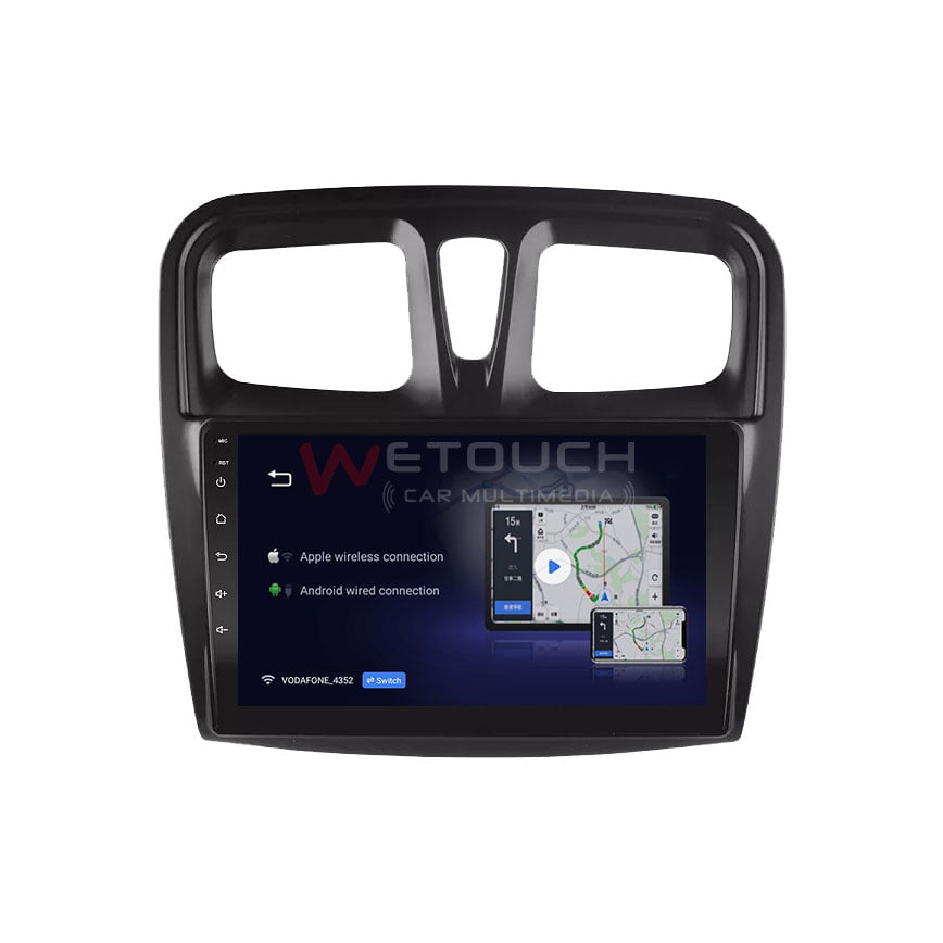 Οθόνη Dacia Sandero Logan multimedia με ενσωματωμένο σύστημα πλοήγησης (χωρίς ίντερνετ) με ελληνική γλώσσα, φωνή & χάρτες. Η οθόνη Dacia της Wetouch έχει πλήρη συμβατότητα με τα χειριστήρια τιμονιού και τις εργοστασιακές λειτουργίες των μοντέλων που ταιριάζει, ενώ διαθέτει λογισμικό Android, λειτουργία αφής και κουμπιά για γρήγορη μετάβαση σε navigation, bluetooth κ.α. Με τη χρήση bluetooth ο χρήστης δέχεται και πραγματοποιεί κλήσεις με πολύ καλή ποιότητα ήχου και μικροφώνου.