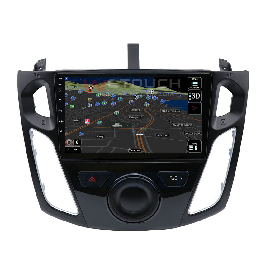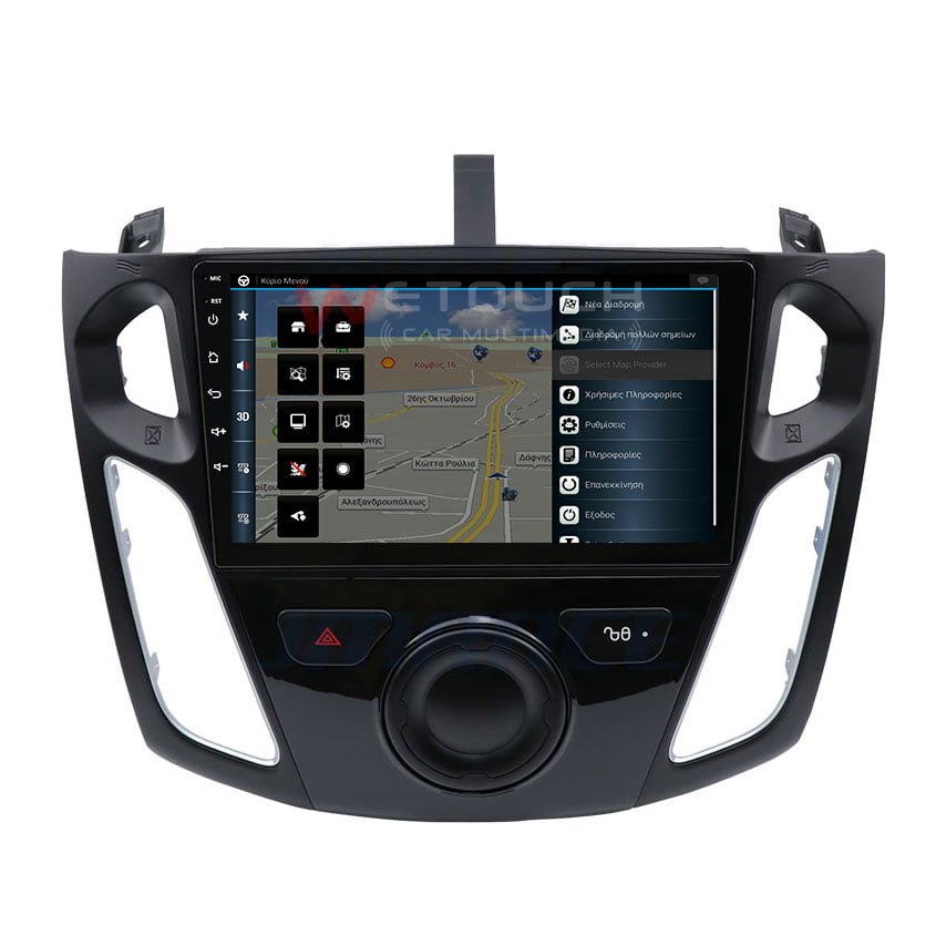 Οθόνη Ford Focus mk3 (2011-2018) με ενσωματωμένο σύστημα πλοήγησης (χωρίς ίντερνετ) με ελληνική γλώσσα, φωνή & χάρτες. Η οθόνη της Wetouch έχει πλήρη συμβατότητα με τα χειριστήρια τιμονιού και τις εργοστασιακές λειτουργίες των μοντέλων που ταιριάζει, ενώ διαθέτει λογισμικό Android, λειτουργία αφής και κουμπιά για γρήγορη μετάβαση σε navigation, bluetooth κ.α. Με τη χρήση bluetooth ο χρήστης δέχεται και πραγματοποιεί κλήσεις με πολύ καλή ποιότητα ήχου και μικροφώνου.