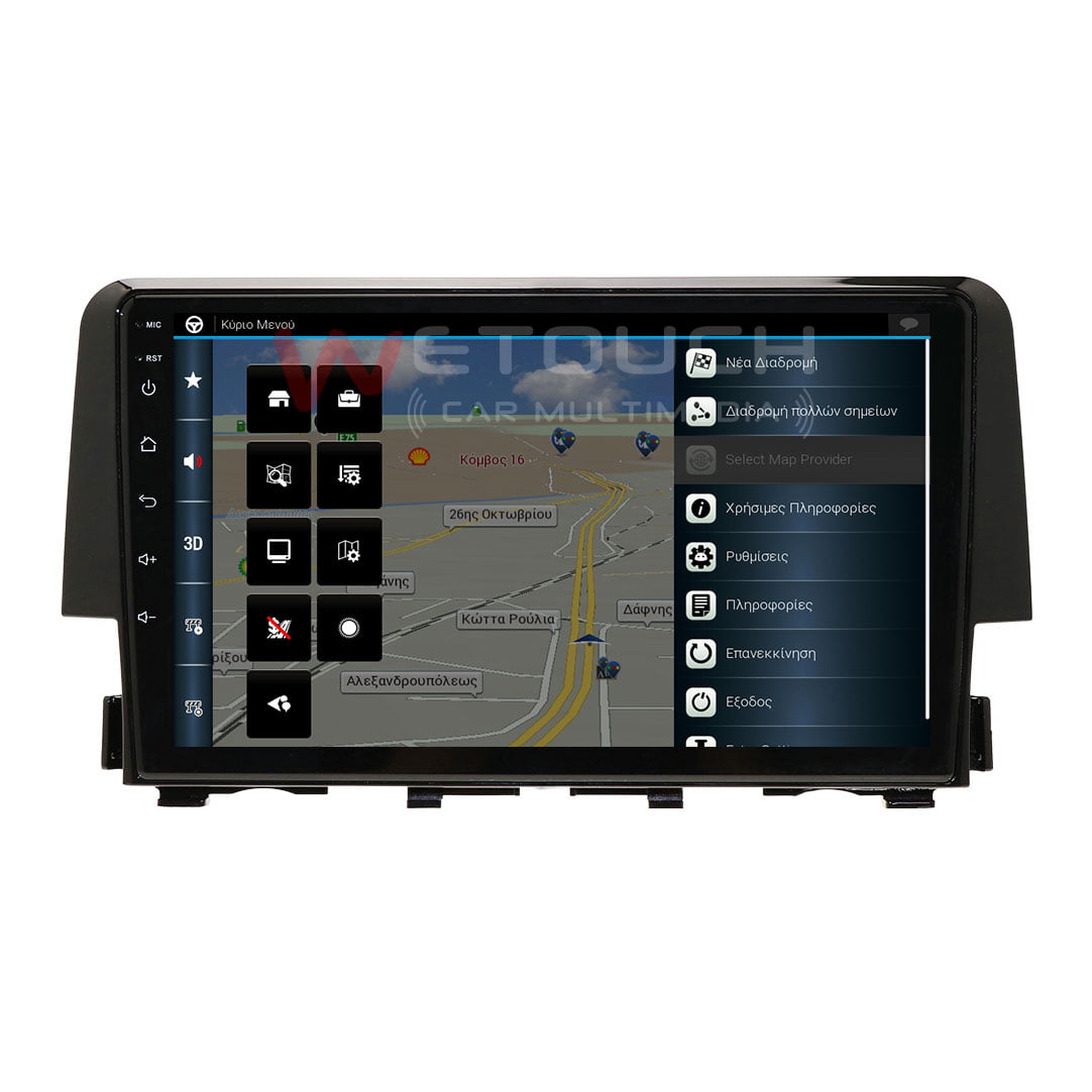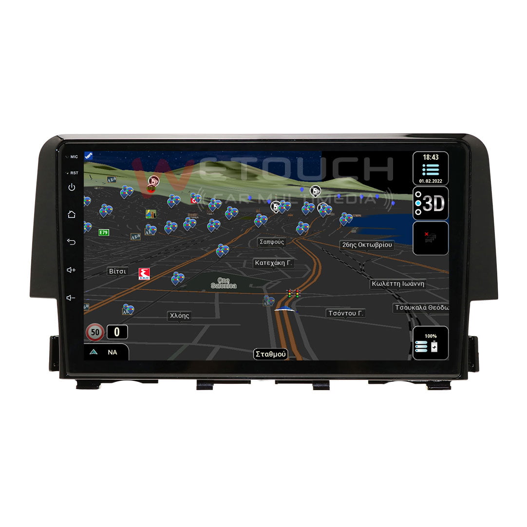 Honda Civic multimedia (2016 ) με ενσωματωμένο σύστημα πλοήγησης (χωρίς ίντερνετ) με ελληνική γλώσσα, φωνή & χάρτες. Η οθόνη Honda Civic της Wetouch έχει πλήρη συμβατότητα με τα χειριστήρια τιμονιού και τις εργοστασιακές λειτουργίες των μοντέλων που ταιριάζει, ενώ διαθέτει λογισμικό Android, λειτουργία αφής και κουμπιά για γρήγορη μετάβαση σε navigation, bluetooth κ.α. Με τη χρήση bluetooth ο χρήστης δέχεται και πραγματοποιεί κλήσεις με πολύ καλή ποιότητα ήχου και μικροφώνου.