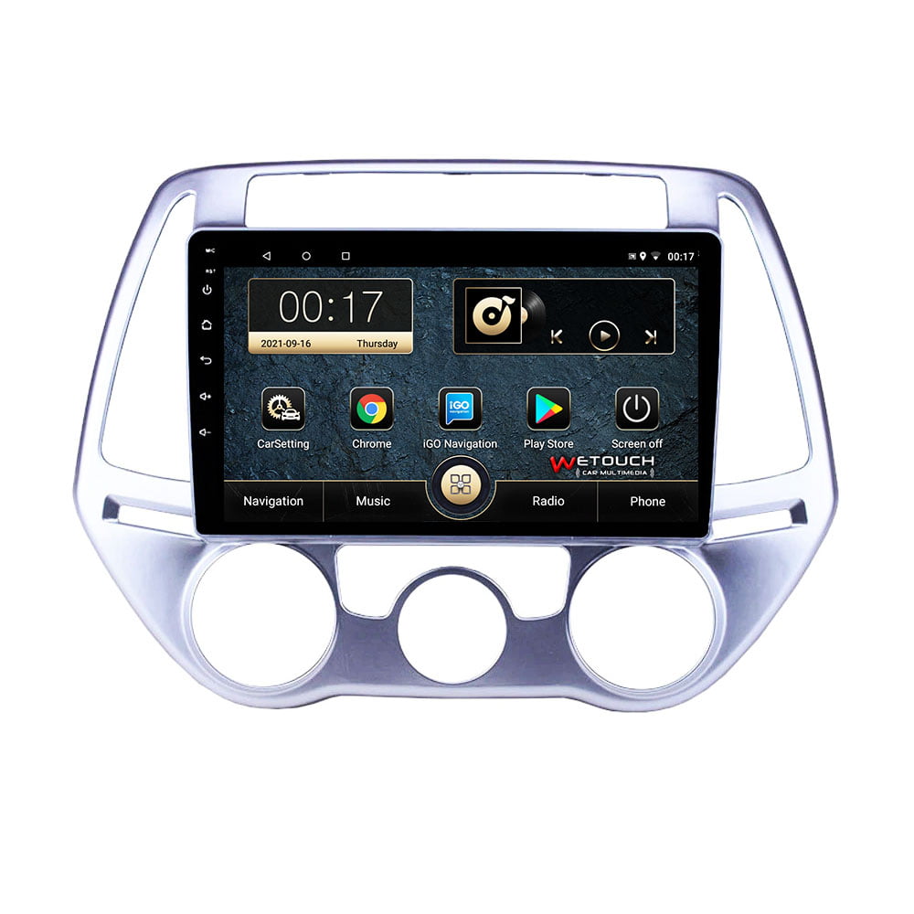 Hyundai i20 multimedia (2012-2014) με ενσωματωμένο σύστημα πλοήγησης (χωρίς ίντερνετ) με ελληνική γλώσσα, φωνή & χάρτες. Η οθόνη Hyundai i20 της Wetouch έχει πλήρη συμβατότητα με τα χειριστήρια τιμονιού και τις εργοστασιακές λειτουργίες των μοντέλων που ταιριάζει, ενώ διαθέτει λογισμικό Android, λειτουργία αφής και κουμπιά για γρήγορη μετάβαση σε navigation, bluetooth κ.α. Με τη χρήση bluetooth ο χρήστης δέχεται και πραγματοποιεί κλήσεις με πολύ καλή ποιότητα ήχου και μικροφώνου.
