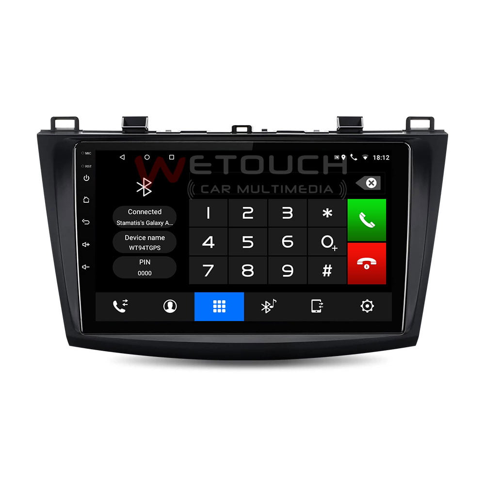 Οθόνη Mazda 3 multimedia με ενσωματωμένο σύστημα πλοήγησης (χωρίς ίντερνετ) με ελληνική γλώσσα, φωνή & χάρτες. Η οθόνη Mazda 3 της Wetouch έχει πλήρη συμβατότητα με τα χειριστήρια τιμονιού και τις εργοστασιακές λειτουργίες των μοντέλων που ταιριάζει, ενώ διαθέτει λογισμικό Android, λειτουργία αφής και κουμπιά για γρήγορη μετάβαση σε navigation, bluetooth κ.α. Με τη χρήση bluetooth ο χρήστης δέχεται και πραγματοποιεί κλήσεις με πολύ καλή ποιότητα ήχου και μικροφώνου.