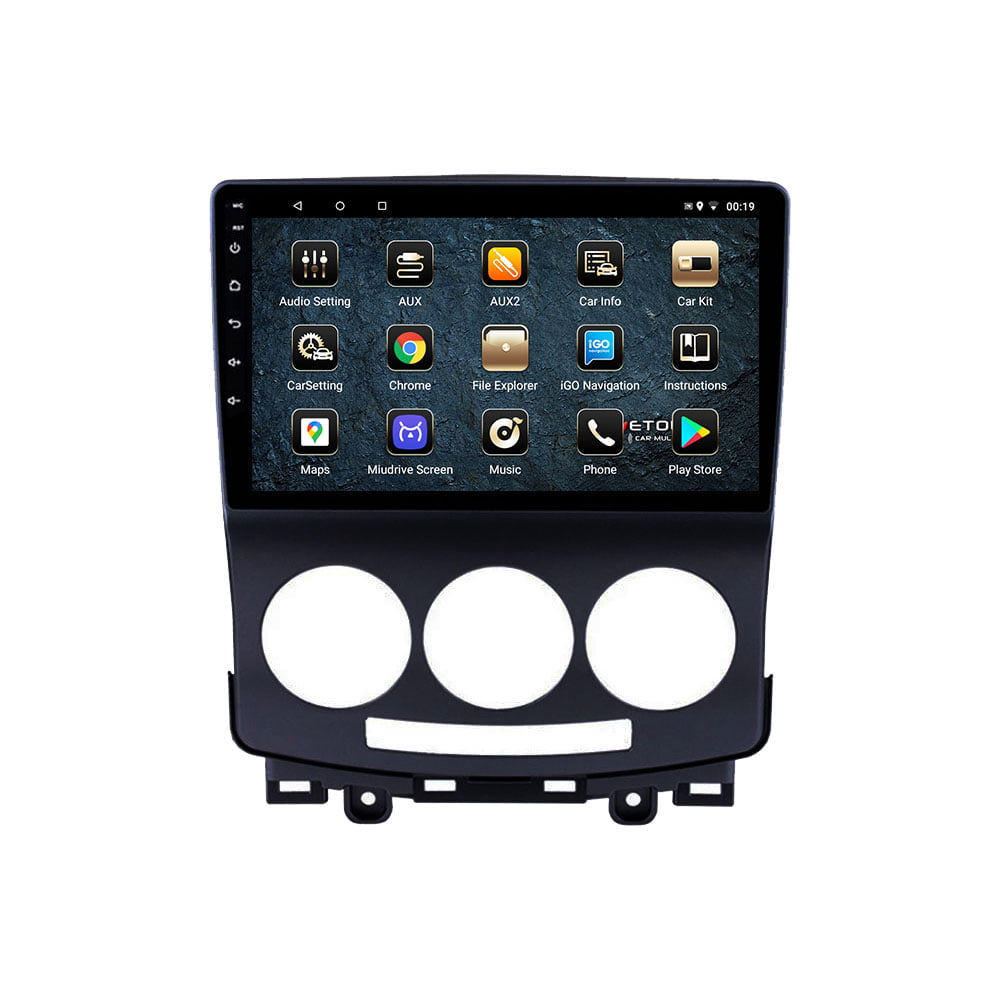 Οθόνη Mazda 5 multimedia με ενσωματωμένο σύστημα πλοήγησης (χωρίς ίντερνετ) με ελληνική γλώσσα, φωνή & χάρτες. Η οθόνη Mazda 5 της Wetouch έχει πλήρη συμβατότητα με τα χειριστήρια τιμονιού και τις εργοστασιακές λειτουργίες των μοντέλων που ταιριάζει, ενώ διαθέτει λογισμικό Android, λειτουργία αφής και κουμπιά για γρήγορη μετάβαση σε navigation, bluetooth κ.α. Με τη χρήση bluetooth ο χρήστης δέχεται και πραγματοποιεί κλήσεις με πολύ καλή ποιότητα ήχου και μικροφώνου.