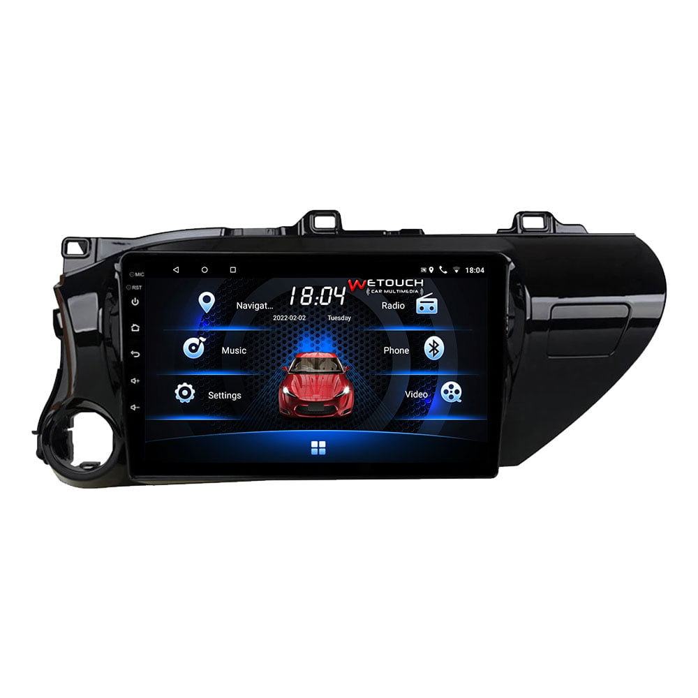 Οθόνη Toyota Hilux multimedia με ενσωματωμένο σύστημα πλοήγησης (χωρίς ίντερνετ) με ελληνική γλώσσα, φωνή & χάρτες. Η οθόνη Toyota Hilux της Wetouch έχει πλήρη συμβατότητα με τα χειριστήρια τιμονιού και τις εργοστασιακές λειτουργίες των μοντέλων που ταιριάζει, ενώ διαθέτει λογισμικό Android, λειτουργία αφής και κουμπιά για γρήγορη μετάβαση σε navigation, bluetooth κ.α. Με τη χρήση bluetooth ο χρήστης δέχεται και πραγματοποιεί κλήσεις με πολύ καλή ποιότητα ήχου και μικροφώνου.