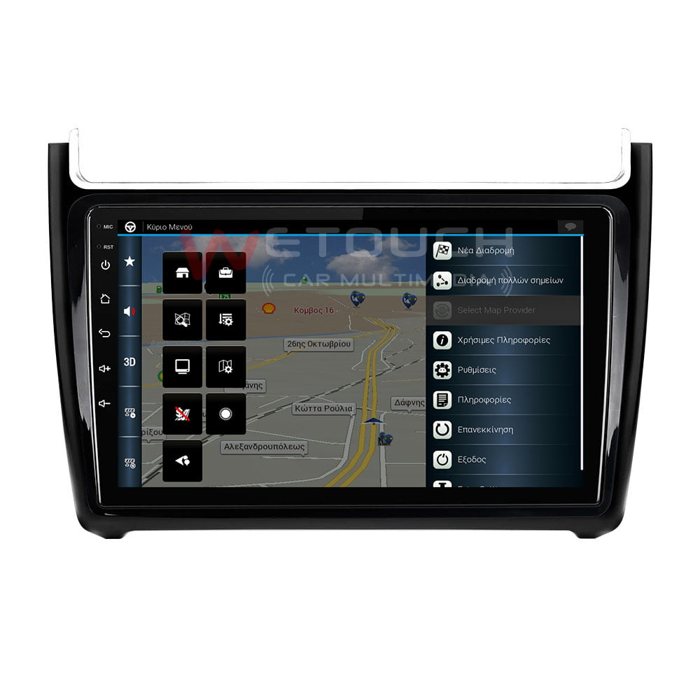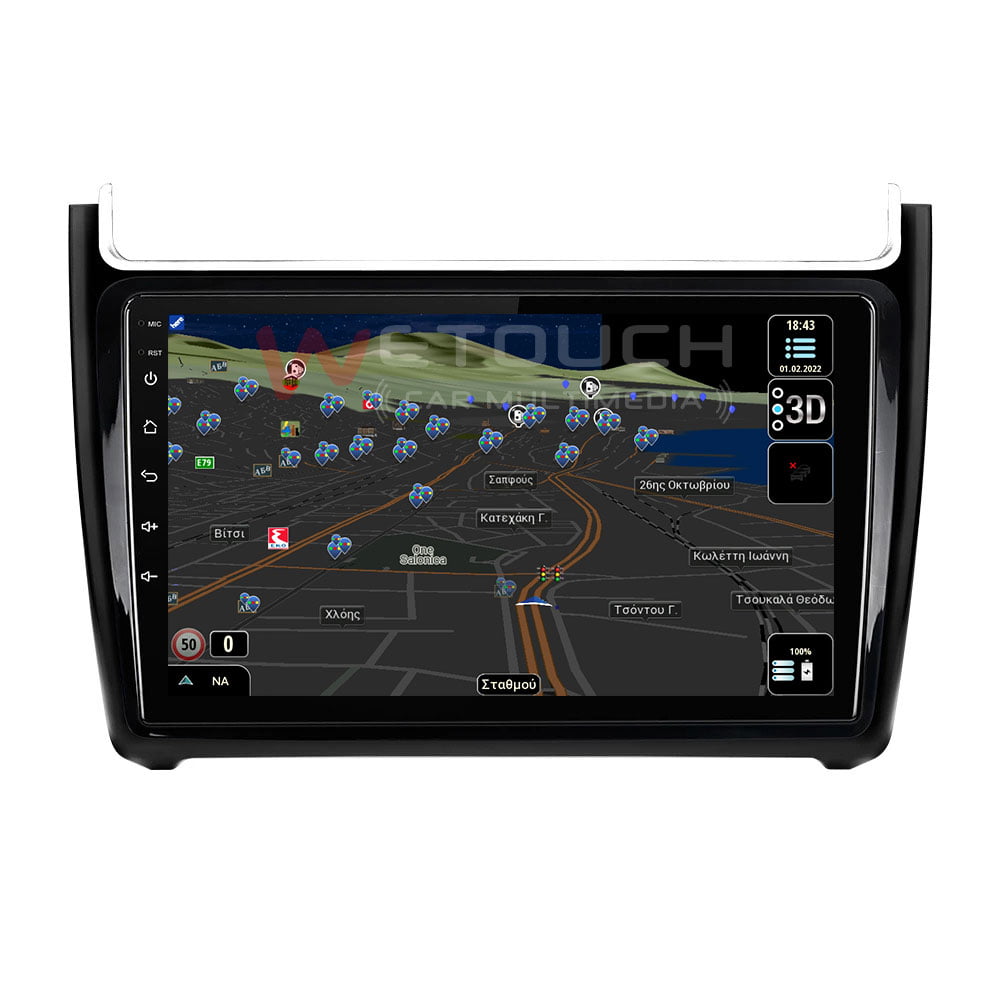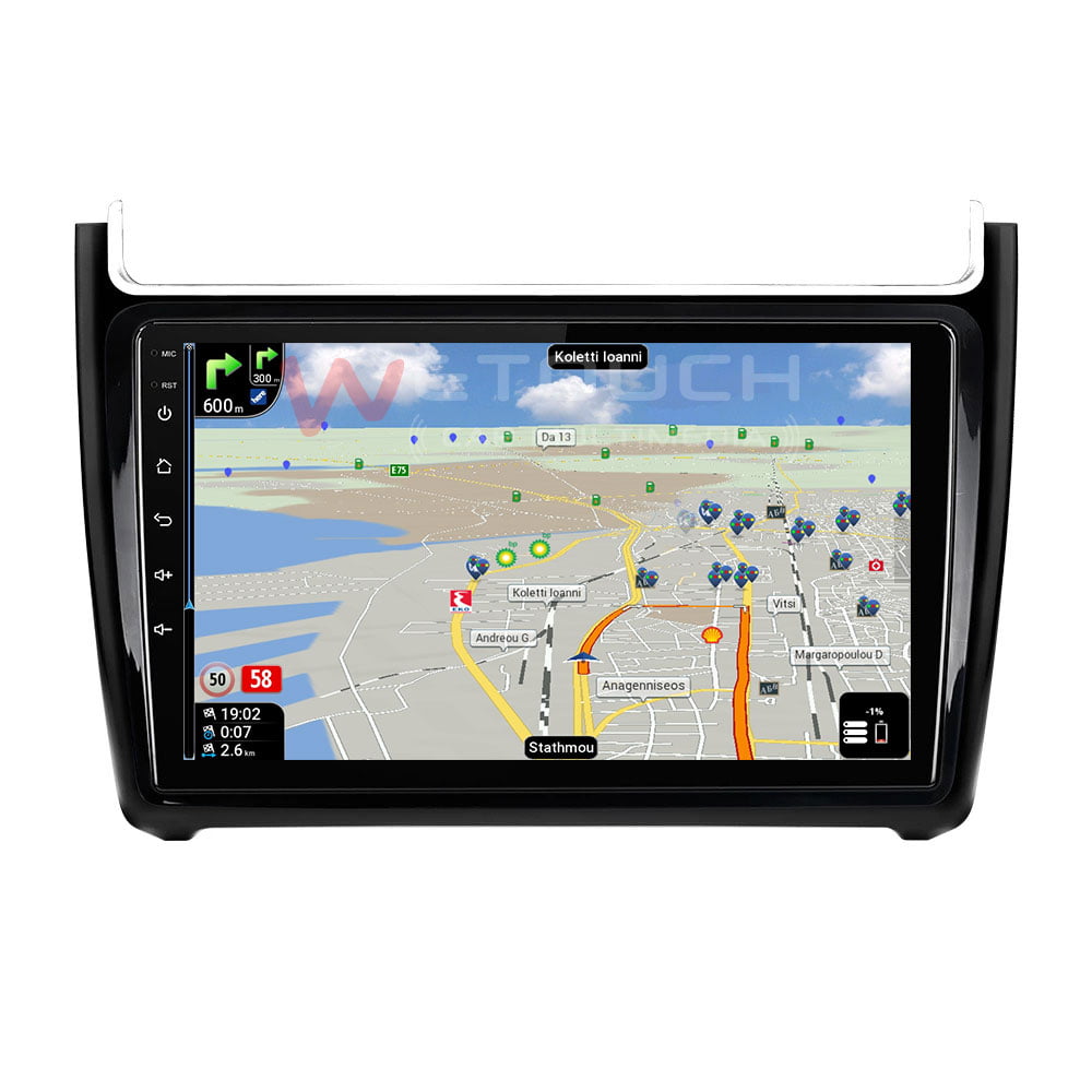 Οθόνη Volkswagen Polo multimedia με ενσωματωμένο σύστημα πλοήγησης (χωρίς ίντερνετ) με ελληνική γλώσσα, φωνή & χάρτες. Η οθόνη Volkswagen Polo της Wetouch έχει πλήρη συμβατότητα με τα χειριστήρια τιμονιού και τις εργοστασιακές λειτουργίες των μοντέλων που ταιριάζει, ενώ διαθέτει λογισμικό Android, λειτουργία αφής και κουμπιά για γρήγορη μετάβαση σε navigation, bluetooth κ.α. Με τη χρήση bluetooth ο χρήστης δέχεται και πραγματοποιεί κλήσεις με πολύ καλή ποιότητα ήχου και μικροφώνου.
