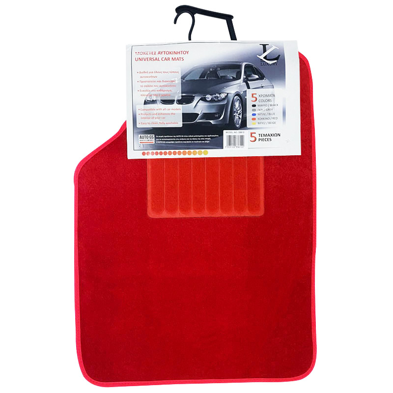 Πατάκια Αυτοκινήτου Universal Μοκέτα Luxury Κόκκινο 5 Τεμάχια