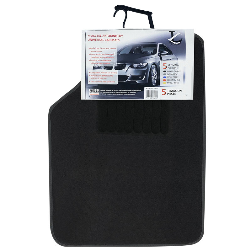 Πατάκια Αυτοκινήτου Universal Μοκέτα Luxury Μαύρο 5 ΤεμάχιαΕξαιρετική επιλογή για να εξασφαλίσετε μια αίσθηση άνεσης και πολυτέλειας στον εσωτερικό χώρο του αυτοκινήτου σας.Κατασκευασμένο από υλικό συνθετικού τάπητα ( μοκέτα ) με απαλό πέλος, το οποίο είναι άοσμο και φιλικό προς το περιβάλλον.Διατίθενται σε μαύρο, γκρι, μπεζ, μπλε και κόκκινο χρώμα και ανάλογα με το όχημα είναι ζευγάρι ή σετ των 5 τεμαχίων.Λεπτομέρειες Προϊόντος Θέση: Εμπρός Θέση: Πίσω Πλήθος Τεμαχίων: 5 Τεμαχια Υλικό: Μοκέτα Χρώμα: Μαύρο Universal | Universal | Universal