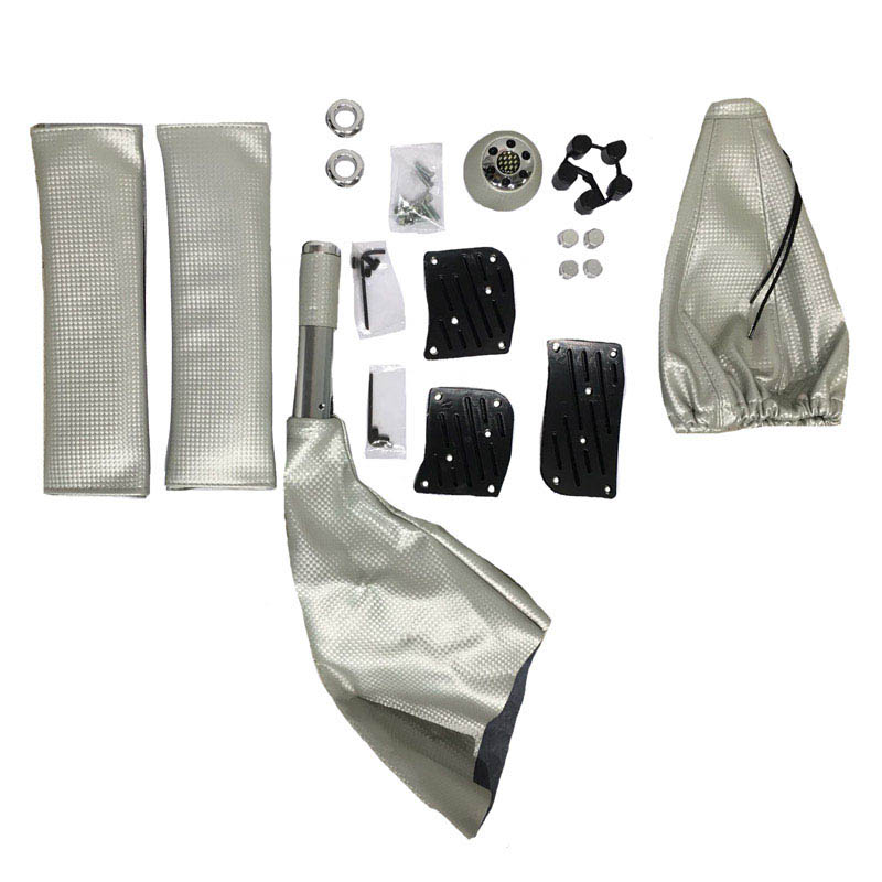 Πεντάλ Αλουμινίου Με Πόμολο Λεβιέ & Φυσούνα Ταχυτήτων Χειροφρένου Universal Ασημί Σετ 6 Τεμάχια