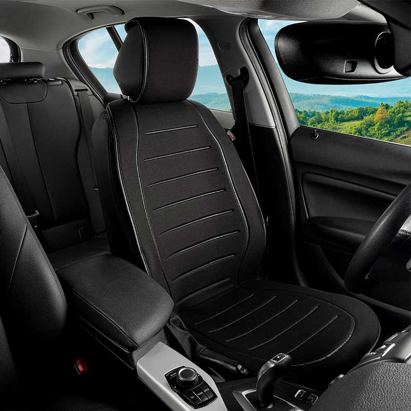 Kατασκευασμένο από διαπνέον ύφασμα συνδυάζει την άνεση, την υψηλή ποιότητα και την αντοχή στην χρήση.Τοποθετείται εύκολα και διαθέτει γάντζους και λάστιχα για μεγαλύτερη σταθερότητα.Είναι εύκολο στο καθάρισμα και μπορεί να πλυθεί στο πλυντήριο.Συμβατό με όλους τους τύπους καθισμάτων (Universal).Στην συσκευασία περιλαμβάνονται 2 τεμάχια: 1 πλατοκάθισμα και 1 κάλυμμα για το προσκέφαλο.