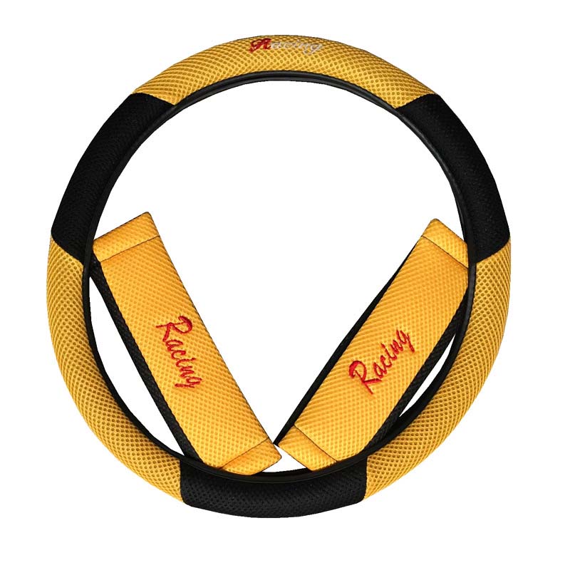 Πλατοκαθίσματα Αυτοκινήτου Με Μαξιλαράκια Ζωνών Και Κάλυμμα Τιμονιού Racing ΜαύροΚίτρινο 5 Τεμάχια