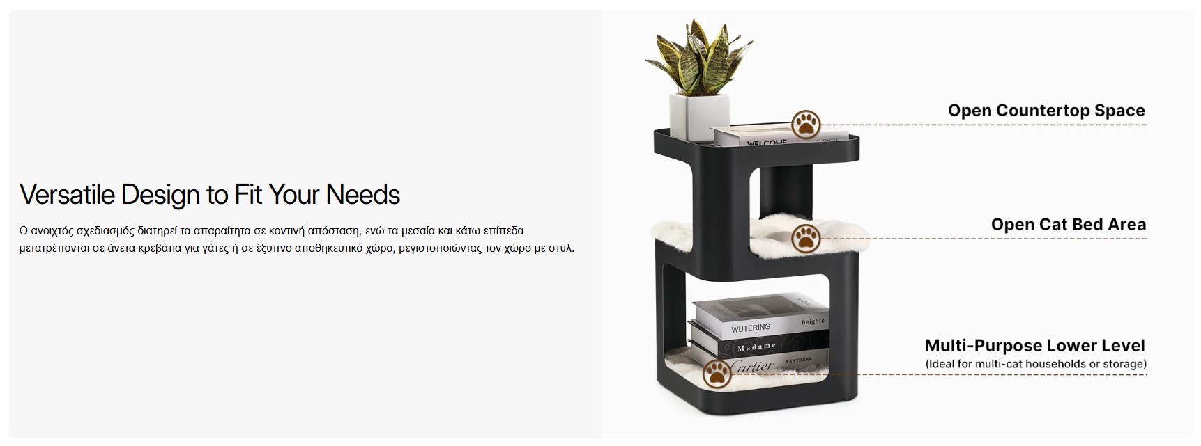 Πύργος Γάτας 3 Επιπέδων Και Βοηθητικό Τραπέζι – Eureka Ergonomic® ERK-P-CET03-B