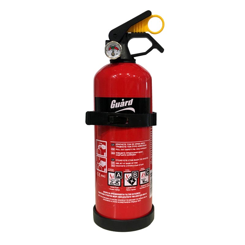 Πυροσβεστήρα 1kg με πιστοποίηση. Με Μανόμετρο και Βάση τοποθέτησης.