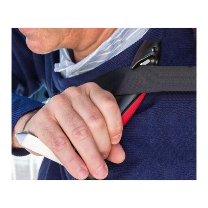 Διαθέτει λάμα – λεπίδα ανάγκης για κόψιμο της ζώνης αν χρειαστεί !