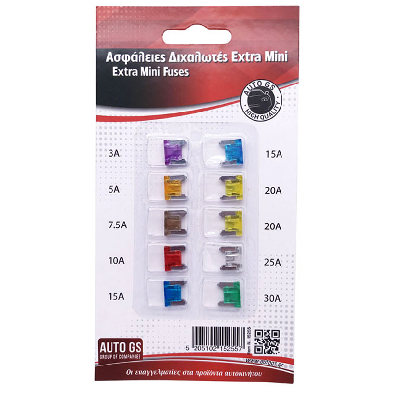 Ασφάλειες Αυτοκινήτου Διχαλωτές Extra Mini Σε Καρτέλα Σετ 10 Τεμάχια