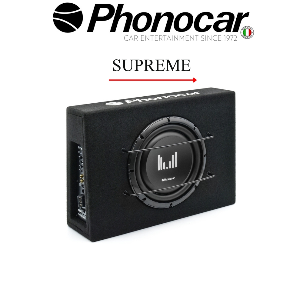 Subwoofer Ø 250 mm. Ενισχυτής κατηγορίας D. Μέγιστη Ισχύς 600W. Ισχύς RMS 200W. Απόκριση συχνότητας 45/250 Hz. Subwoofer σε ακουστικό κουτί με ενισχυτή κατηγορίας D που έχει σχεδιαστεί για να μεγιστοποιεί τα μπάσα και να εγγυάται καθαρή αναπαραγωγή χωρίς παραμόρφωση σε όλες τις εντάσεις.